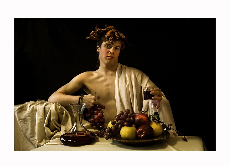 Guido Reni, nel suo Bacco che beve, dipinge, invece, un bambino nudo, paffuto e alticcio.