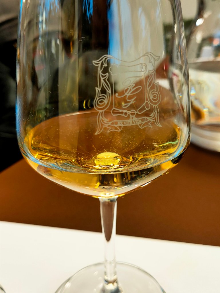 La mia degustazione non ha seguito le linee del tempo ma quelle della seduzione; e il primo vino ad attrarmi è stato proprio questo. Forse perché il vino è un ritaglio di tempo e quando gli anni sono molti la scommessa è più allettante. Nel calice dorato e denso di questo ’97 ho trovato una incredibile ampiezza olfattiva: albicocca, pesca sciroppata, canditi, dattero, erbe aromatiche come il rosmarino, note di torba e richiami di miele di castagno. Il sorso è corroborante, sapido e fresco, molto lungo. Non solo, questo vino è gravitazionale, ha il potere di riconnetterci con noi stessi, con le nostre radici, con i nostri desideri.