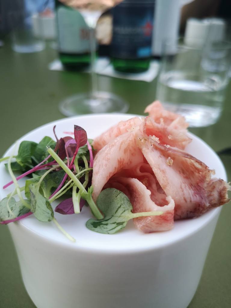 Carpaccio di Wagyu, misticanza orientale, nocciola e vaniglia